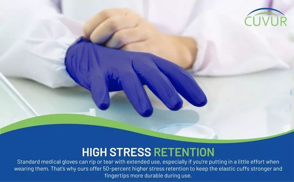 Standard medical gloves can rip or tear with extended use, especially if you're putting in a little effort when wearing them. That's why ours offer 50-percent higher stress retention to keep the elastic cuffs stronger and fingertips more durable during use.