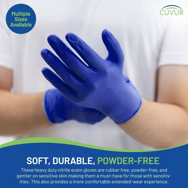 These heavy duty nitrile exam gloves are rubber free, powder-free, and gentler on sensitive skin making them a must-have for those with sensitivities. This also provides a more comfortable extended-wear experience.