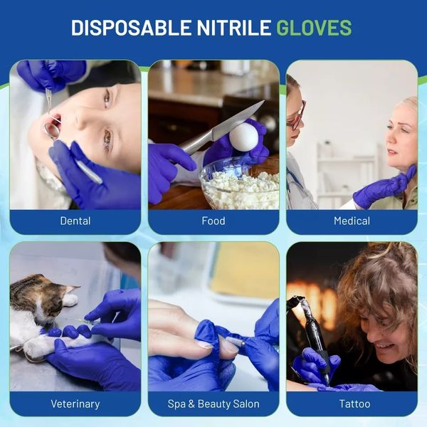Nitrile gloves are versatile, disposable gloves designed for a wide range of functions, including dental, food service, medical, veterinary, spa and beauty, and tattoo artistry. Ideal for ensuring hygiene and safety in both professional and personal settings.