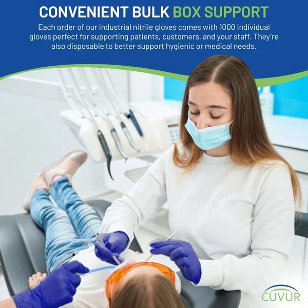 Each order of our industrial nitrile gloves comes with 1000 individual gloves perfect for supporting patients, customers, and your staff. They're also disposable to better support hygienic or medical needs.
